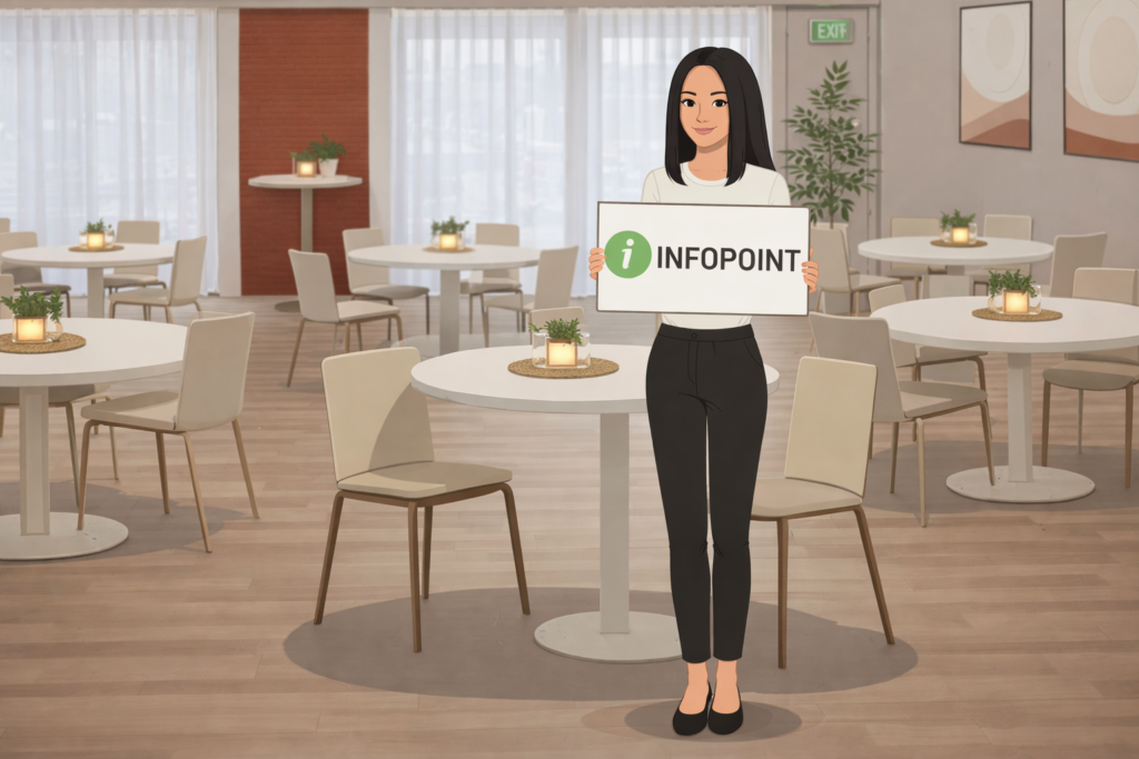 Plätze können auch direkt im Infopoint reserviert werden. Sprechen Sie unsere Mitarbeiterin vor Ort einfach an.